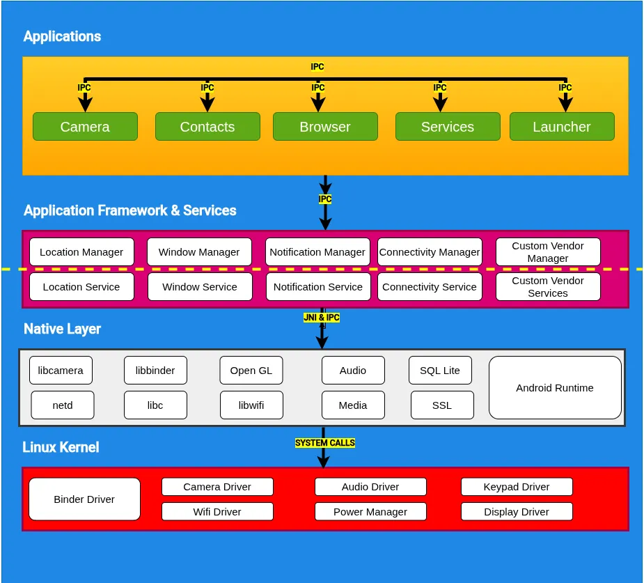 Cu toate acestea, majoritatea serviciilor Android și callback-urilor din ciclul de viață al aplicațiilor (cum ar fi onResume() și onDestroy()) depind de Binder. Dezactivarea Binder ar opri sistemul — fără interfață grafică, fără audio, fără senzori.